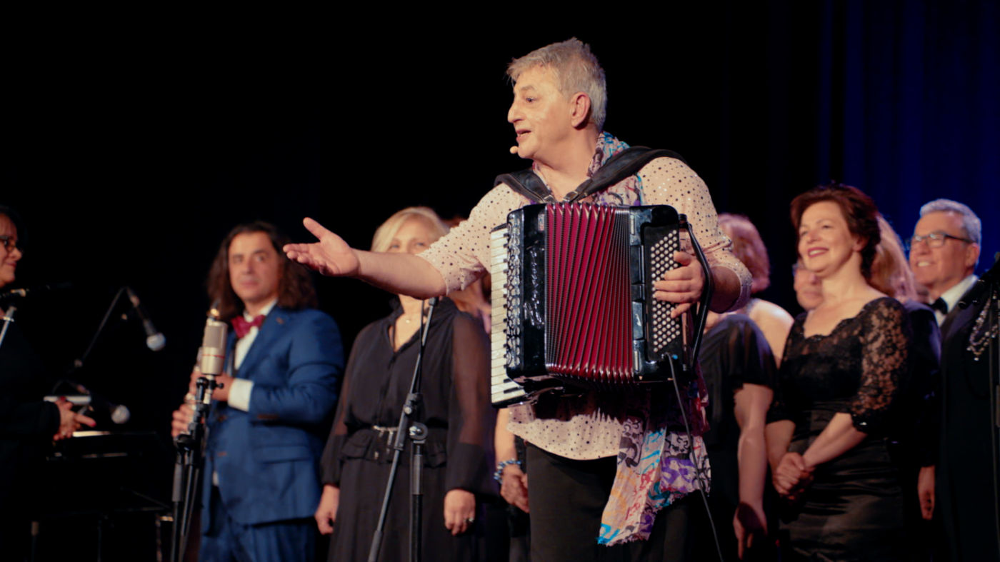 Eine Theaterszene über den verstorbenen türkischen Sänger Zeki Müren aus der Musik Revue „Lieder und Geschichten im Transit“.