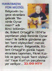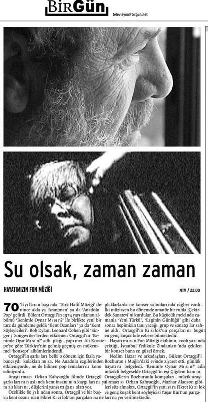 Mit seinem gleichnamigen Album initiierte Bülent Ortaçgil 1974 die Sparte des Liedermachers in der Türkei. Selbstkomponierte Songs z.B. über die Einsamkeit, Liebeskummer oder den Sinn des Lebens in der Großstadt selbst zu singen, so etwas gab es zuvor nicht in der Türkei. Der Sound, Duktus und die Thematik waren mit der anatolischen „Aşık“ / Volksbarden-Tradition auch nicht zu vergleichen.