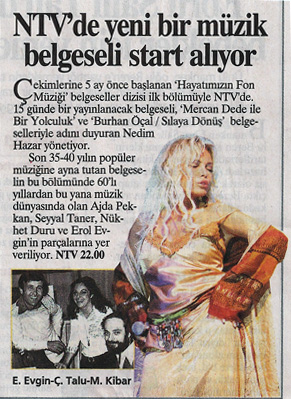 In dieser Folge kommen Interpreten vor wie die legendäre Popdiva Ajda Pekkan, Alpay, Seyyal Taner, Nükhet Duru, oder Erol Evgin– Urgesteine des türkischen Pop. Stars der jüngeren Generation, z.B. Sezen Aksu oder Tarkan, sollten in einem anderen Teil dargestellt werden, der aber nicht mehr zustande kam.