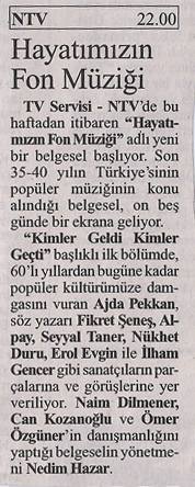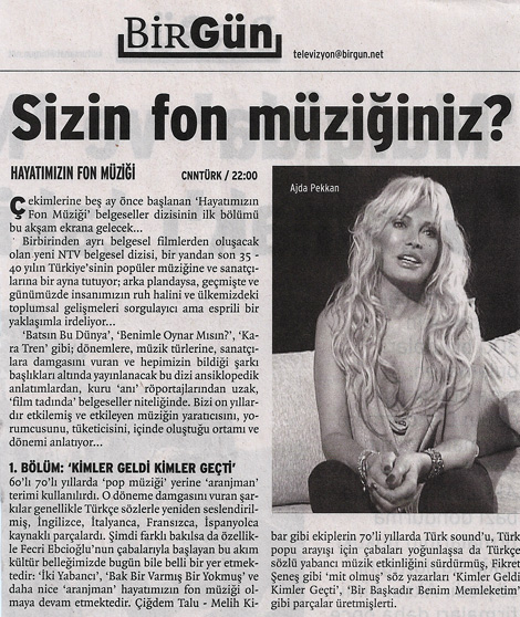 „Kimler Geldi Kimler Geçti“, ist mit der bekannteste Song der türkischen Popmusik, ist ein Cover von „If We Were Free“ des Engländers Tony Hatch. In den 60er und 70er Jahren wurden europäische Schlager, vor allem italienische und französische, auf Türkisch gecovert. Die so entstandene neue Sparte der Popmusik wurde „Aranjman“ oder „leichte Musik“ genannt. Solche Etiketten waren ausschlaggebend, um durch die Zensurstelle vom staatlichen TRT durchzukommen, dem einzigen Sender zu der Zeit. Sie prüfte nicht nur Liedtexte, sondern auch die Musik selbst. Mischungen, z.B. europäisch mit einheimischen Klängen, waren nicht vorgesehen. Es dauerte lange, bis der eigentliche türkische Sound im Pop eintrat.