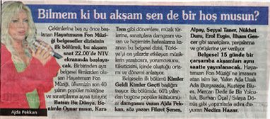 „Unsere Hintergrundmusik“ stieß auf ein sehr positives Echo der Presse, hatte unerwartet hohe Einschaltquoten und wurde zu einem Meilenstein in der Geschichte des türkischen Fernsehens.